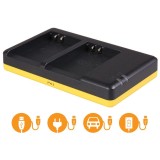 Endast 11,5 cm x 6,9 cm stort och fortfarande laddas två batterier på samma gång! Du ansluter helt enkelt din micro USB-kabel (t.ex. din smartphone) till laddaren och du kan ladda kamerabatterierna!