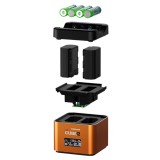 Med Hähnel ProCube2 kan du ladda 1 eller 2 kamerabatterier åt gången. Du kan säkert komma på flera vanliga situationer där det kan vara väldigt praktiskt! LCD-skärmen visar exakt status för båda batterierna var för sig.